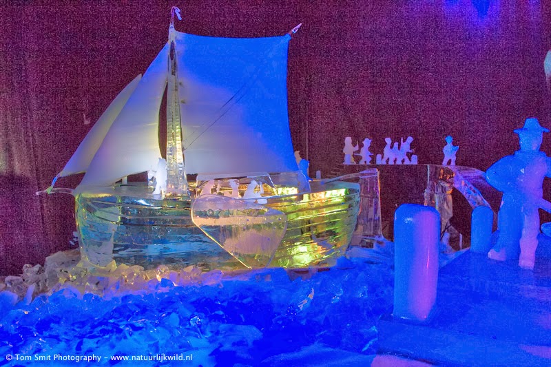 Vandaag op pad gegaan naar de IJsbeelden in Zwolle. Had niet zoveel idee wat ik me er bij voor moest stellen maar collega's die er geweest waren hadden me nieuwsgierig gemaakt. Aangezien er weer wat uurtjes opgestapeld waren die op moesten was dit dus een mooie gelegenheid om te gaan. De expo is op zich heel mooi om te zien. Wat ik wel jammer vond was het feit dat niet alles echt goed te zien was door het licht of het ontbreken ervan. Met name de schilderijen waren soms wat moeilijk te zien omdat de achtergrond niet echt meewerkte (dennenbomen) in combinatie met het gebruikte licht. Hierdoor kwamen zeker de schilderijen niet echt tot hun recht met name de details die er wel degelijk waren ging op deze manier verloren. Maar goed ook voor de fotograaf was het een hele uitdaging. Alles moest koel en donker bewaard worden dus gelukkig het statief meegenomen. Het was echter ene stuk drukker dan ik verwacht had dus was niet altijd even handig dat statief, maar denk dat ik toch redelijk geslaagd ben. Ander nadeeltje was dat door de glinstering van het ijs het licht echt alle kanten op weerkaatste. Maar goed dat maakt de uitdaging alleen maar leuker en groter.
